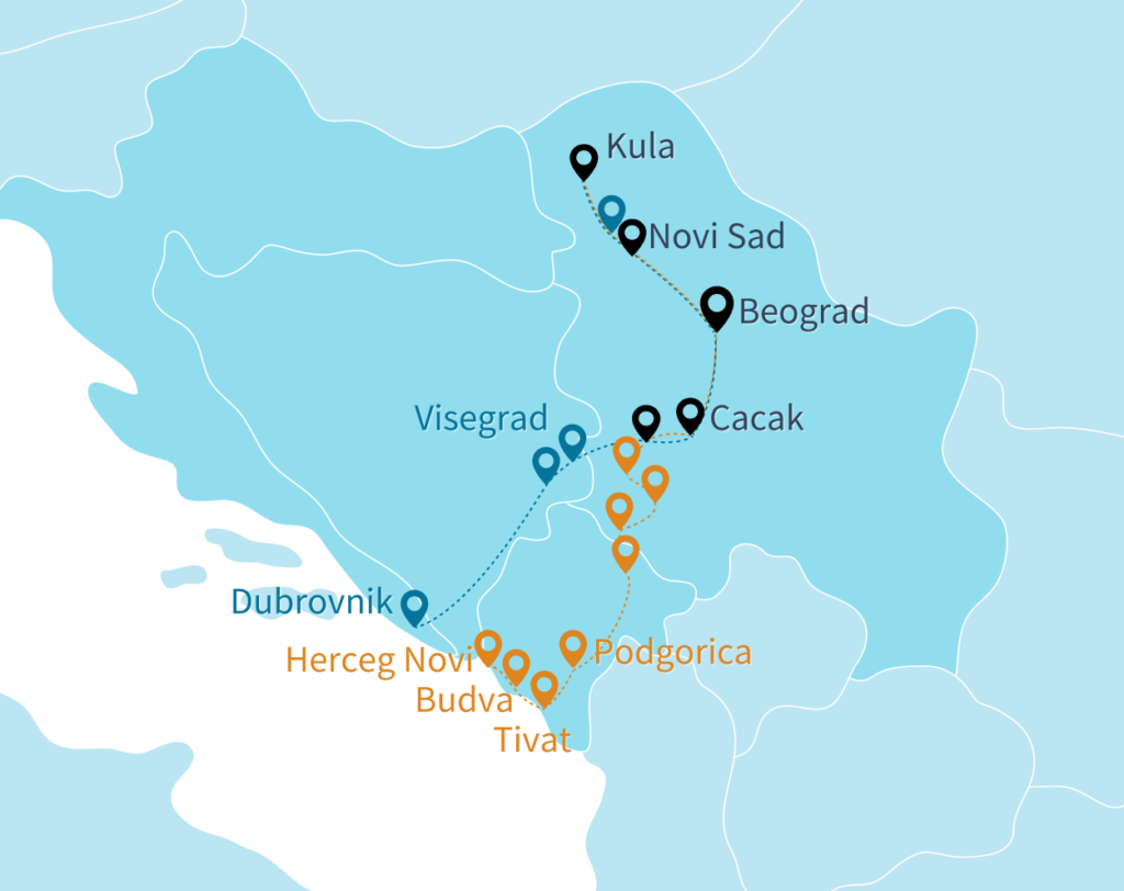 Pogodan način putovanja između gradova Srbije, Crne Gore i Bosne i Hercegovine i Hrvatske